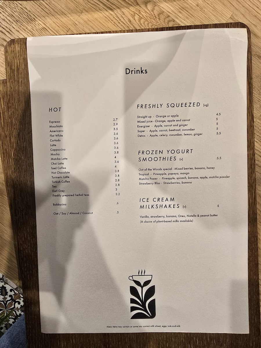 The menu at Out of the Woods offers a range of options suitable for breakfast, brunch, and light meals throughout the day. It is organized into several sections to cater to different preferences and dietary needs.
